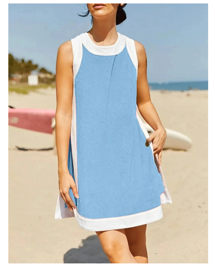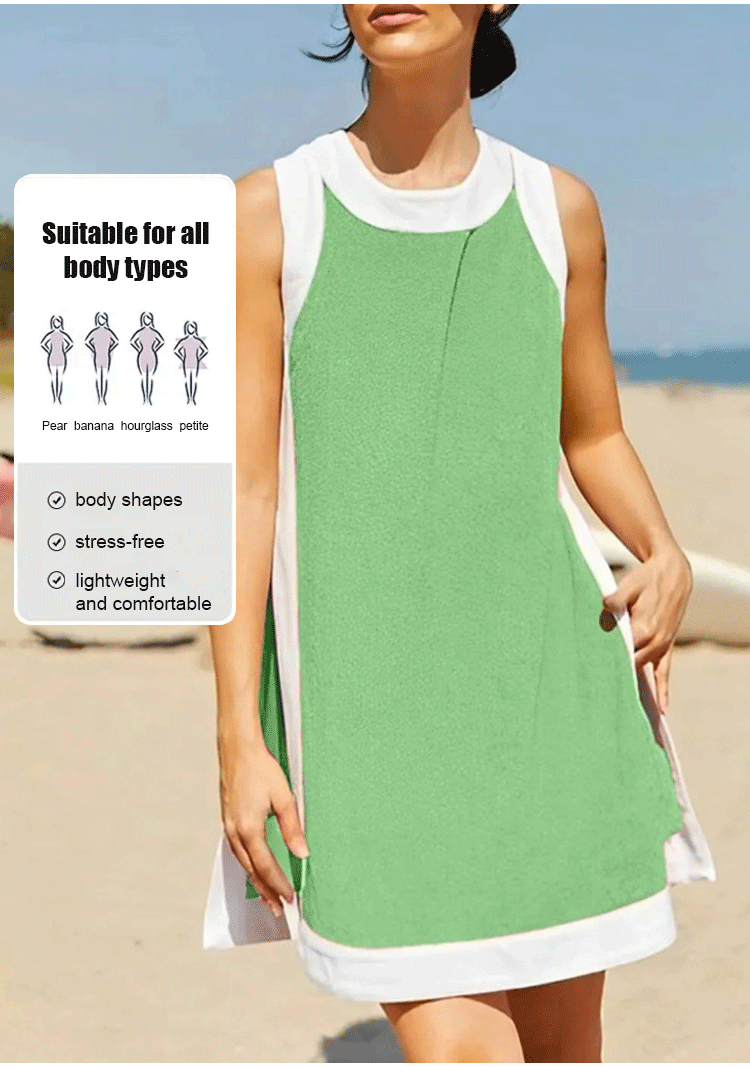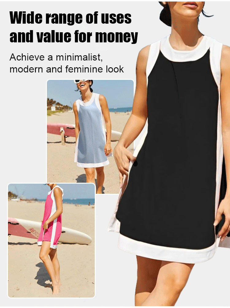 [Casual contrast color] Sleeveless top and shorts set