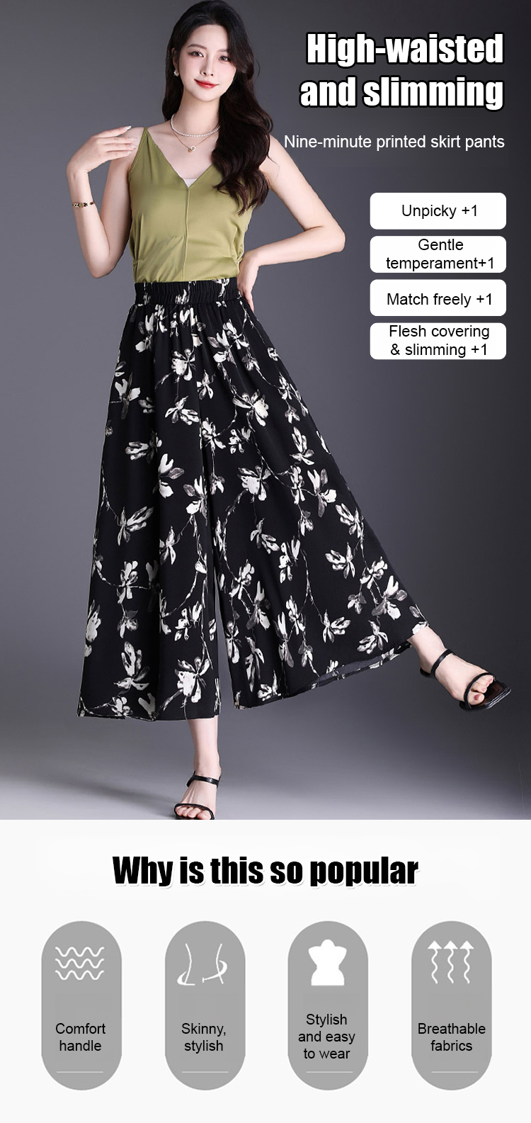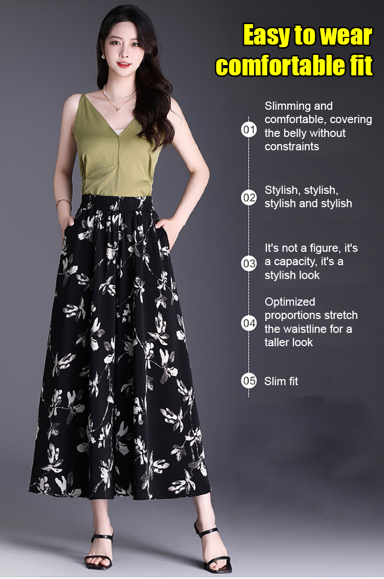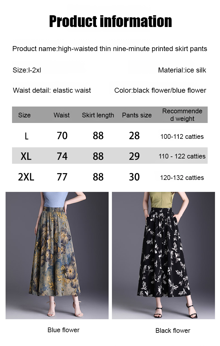 High waist slim fit nine point printed skirt pants