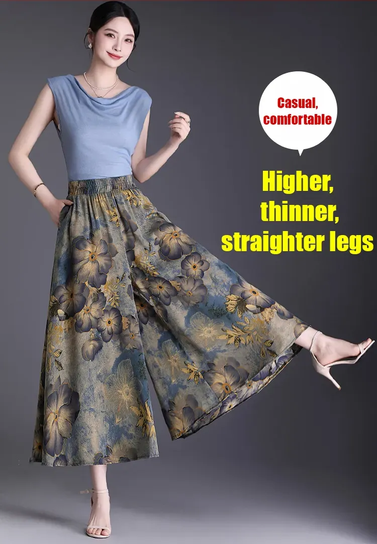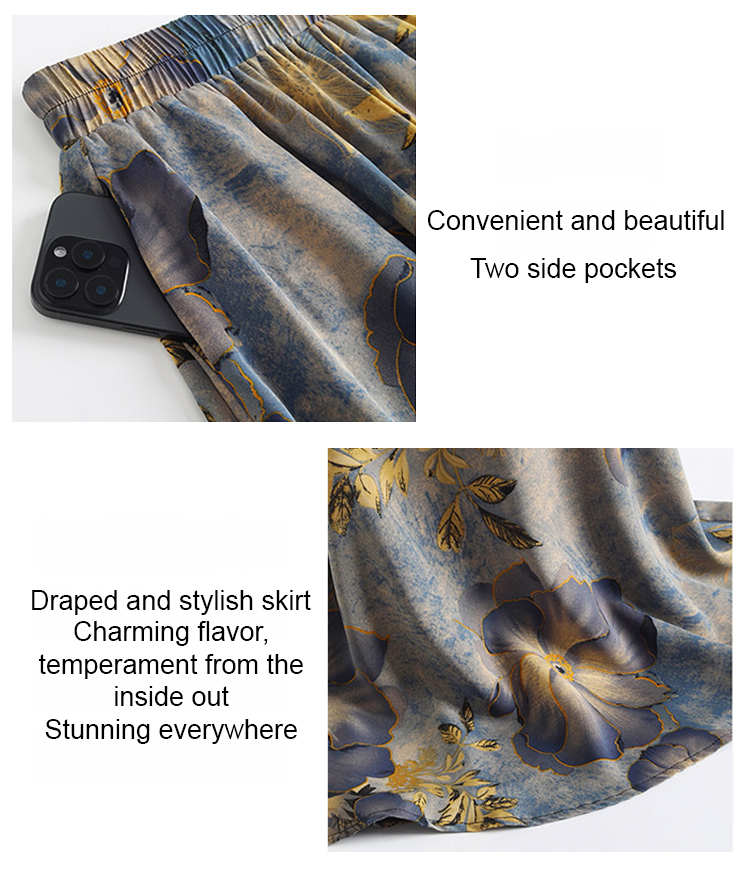 Large Swing Skirt Pants-Blue Flower
