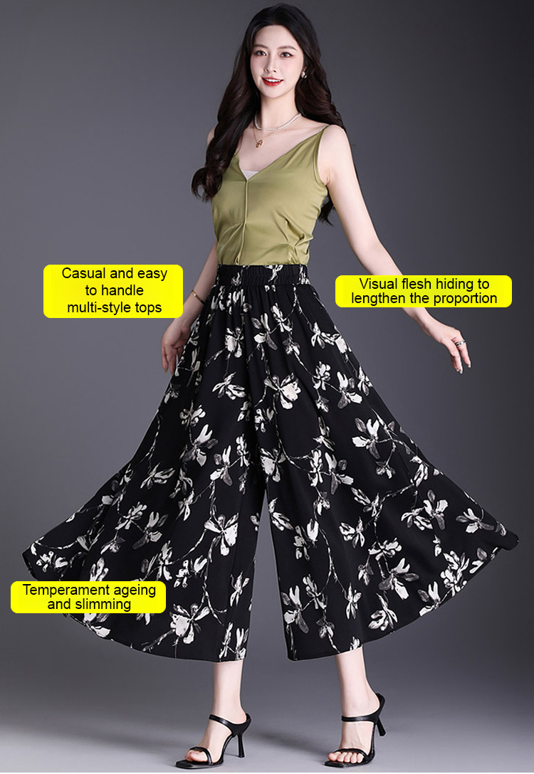 Swing Skirt Pants-Black Flower