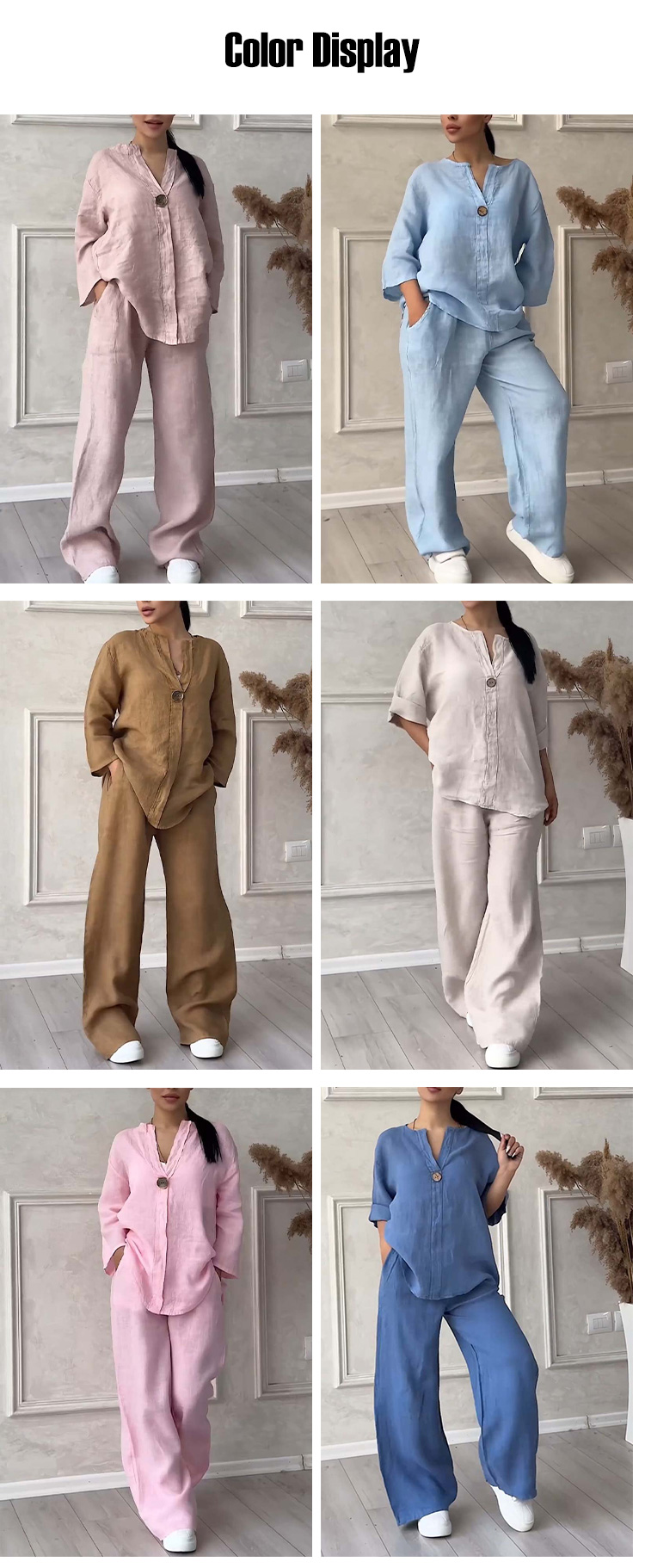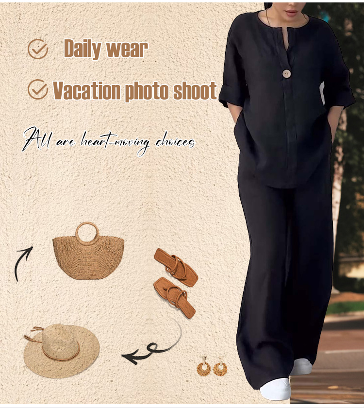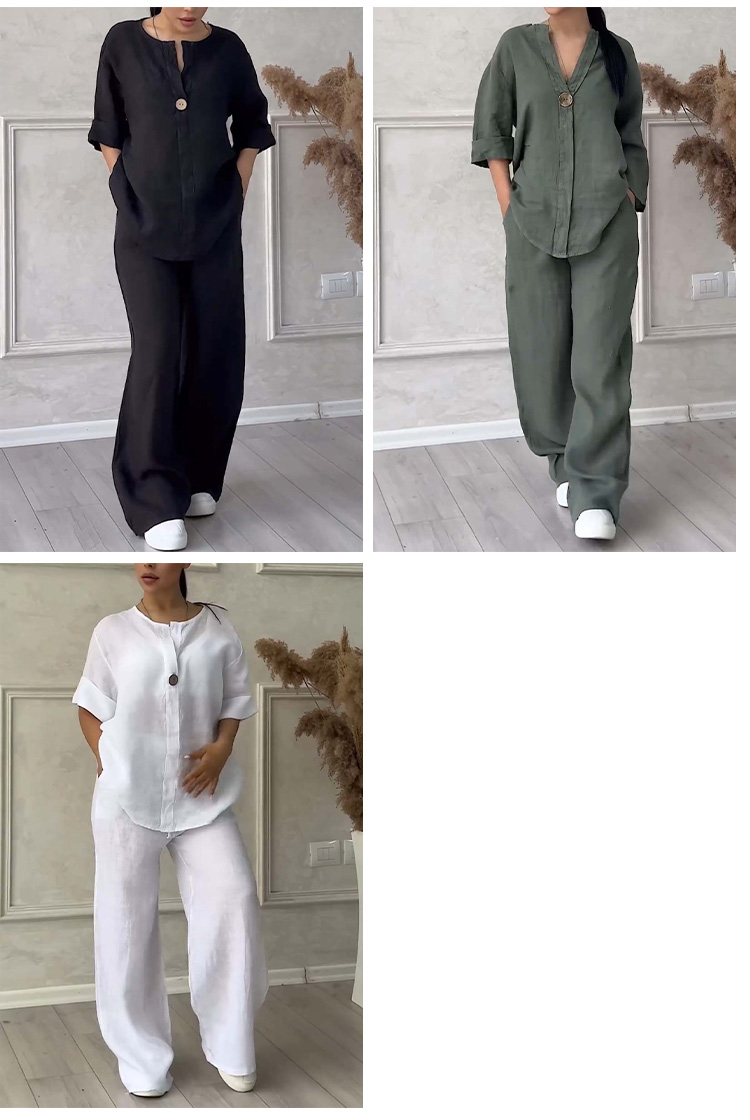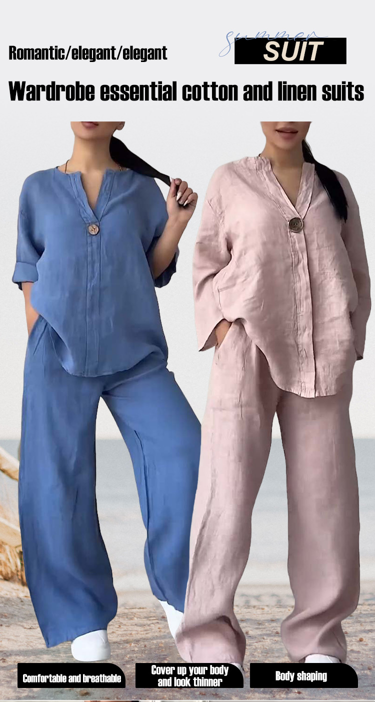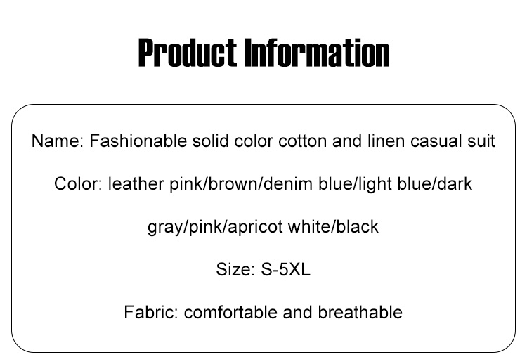 Fashionable Solid Color Cotton and Linen Casual Suit